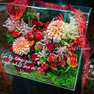 - Hộp hoa đặc sắc: Sự kết hợp giữa sự sang trọng của hộp và vẻ đẹp của hoa tươi, tạo nên một món quà độc đáo và đẳng cấp.